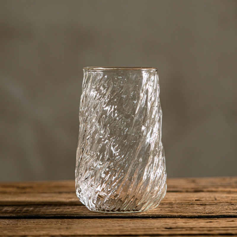 斜纹冷饮杯 高硼硅咖啡果汁饮料杯 不规则螺旋纹日常饮水玻璃杯