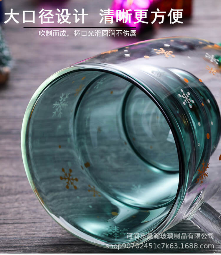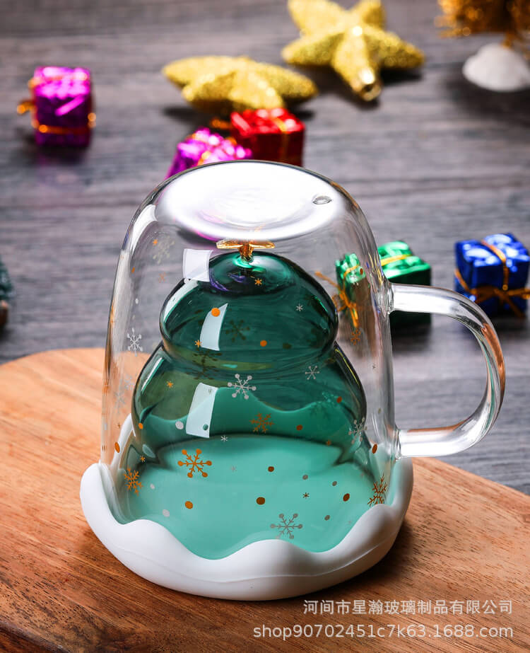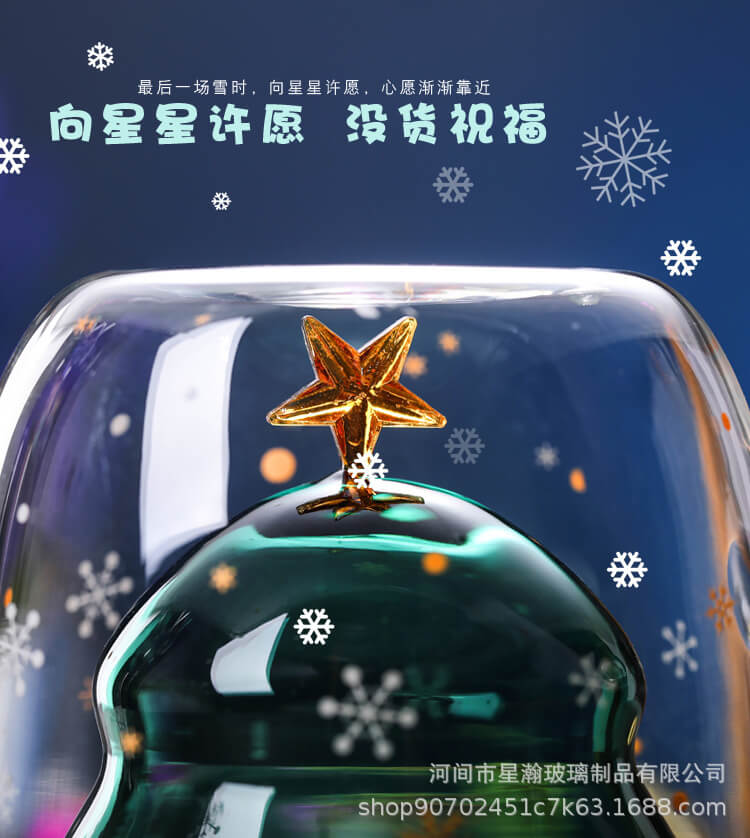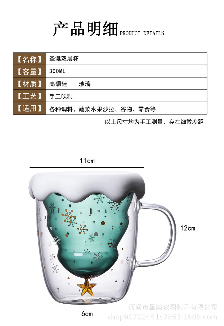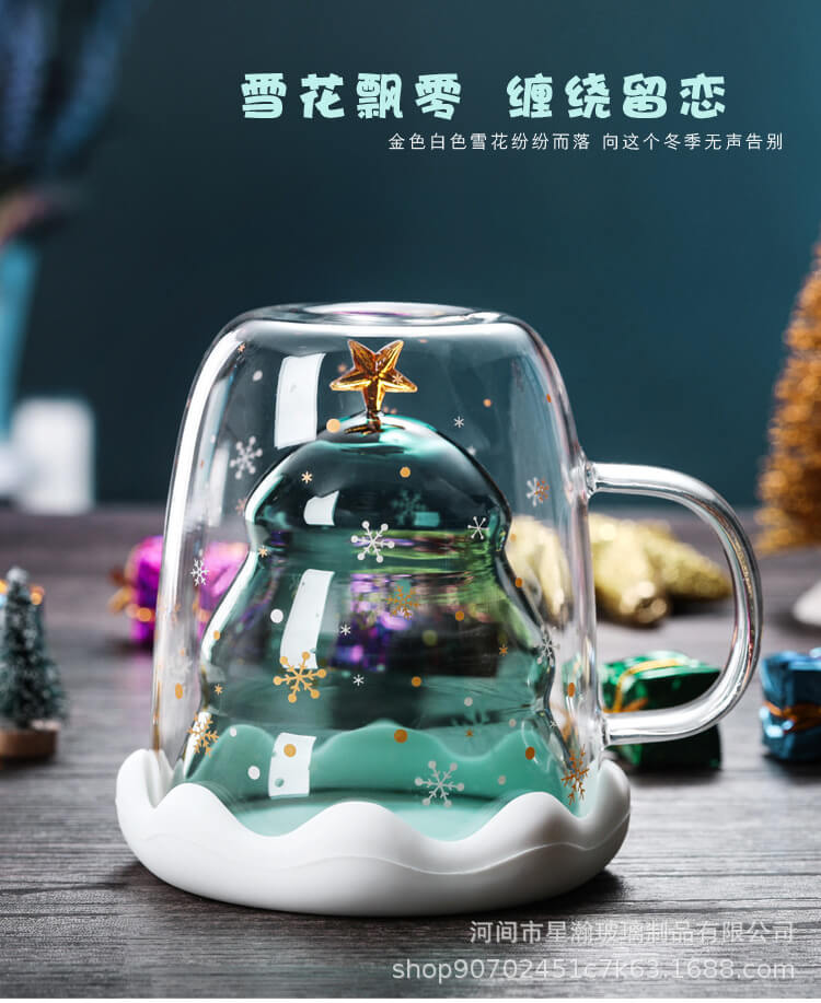 创意可爱隔热圣诞杯家用耐高温咖啡牛奶杯立体圣诞树双层玻璃杯