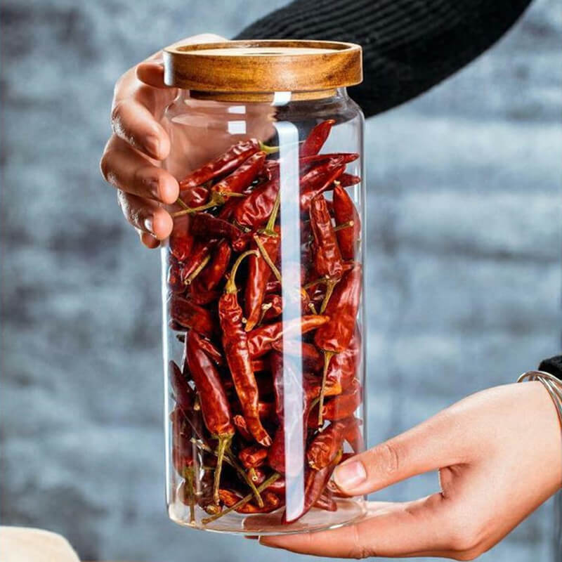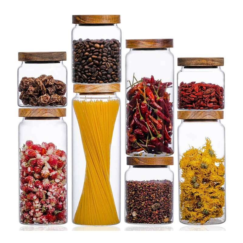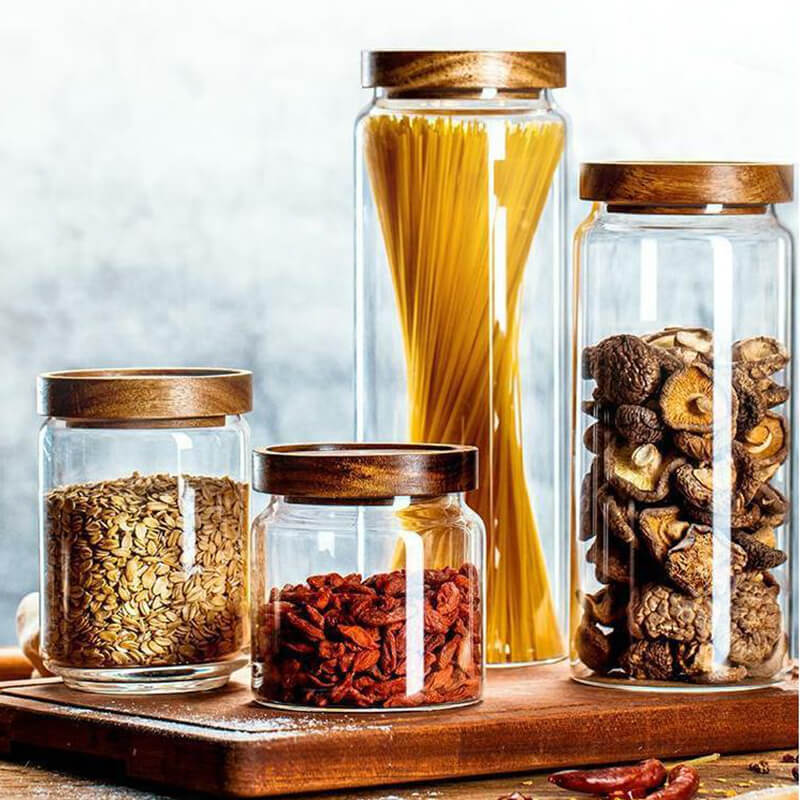 Customized Airtight Freshness Preservation Food Storage Containers Borosilicate Glass Jar with Wood Lid