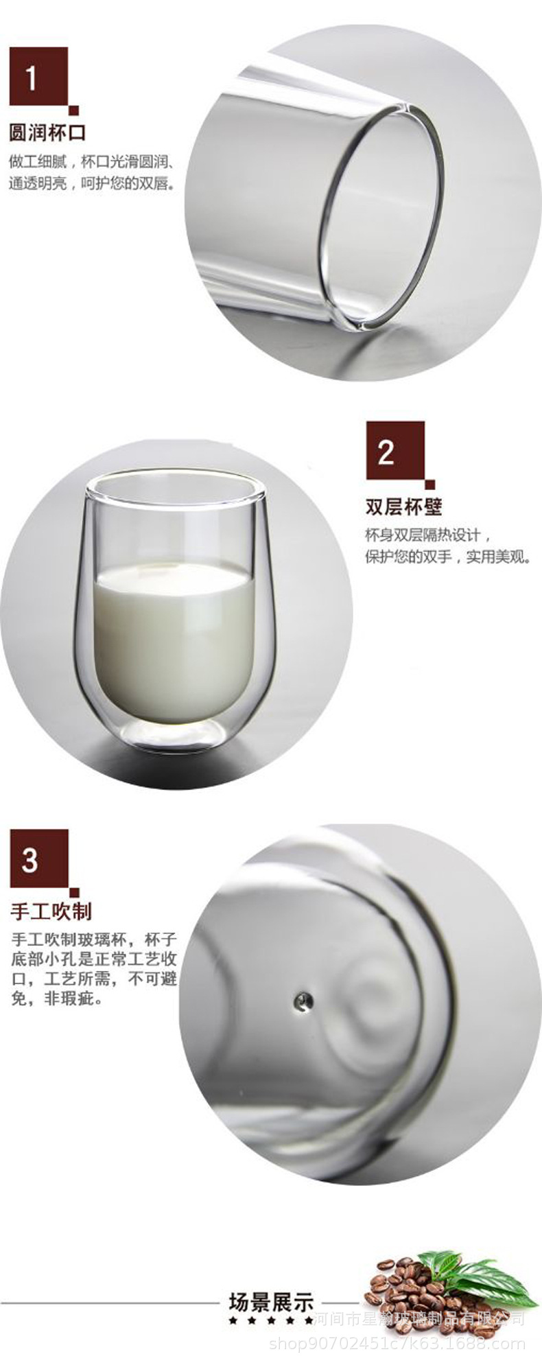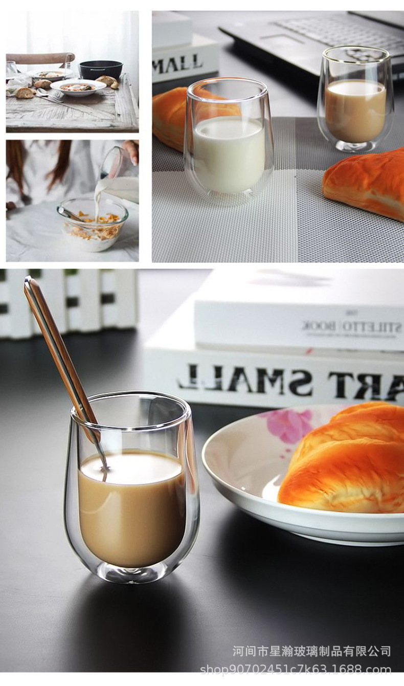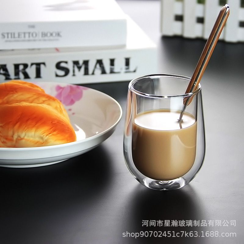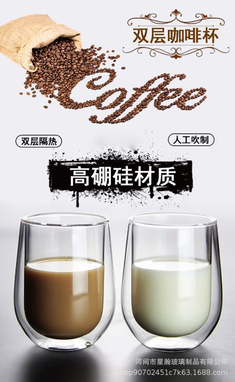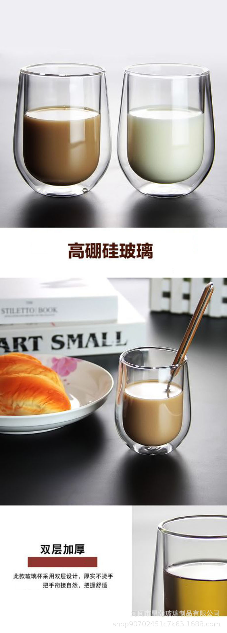 定制高硼硅耐高温玻璃咖啡杯牛奶杯透明玻璃双层杯家用双层牛奶杯