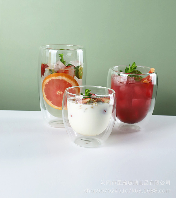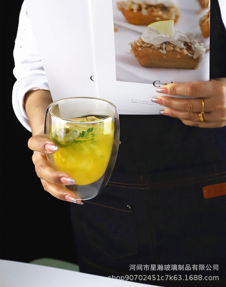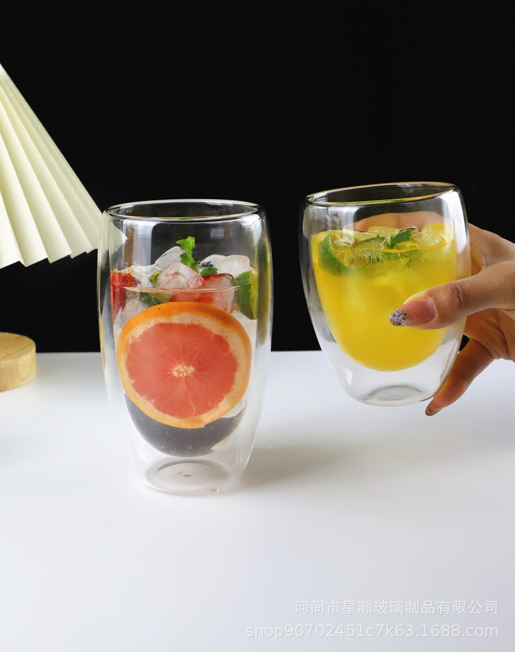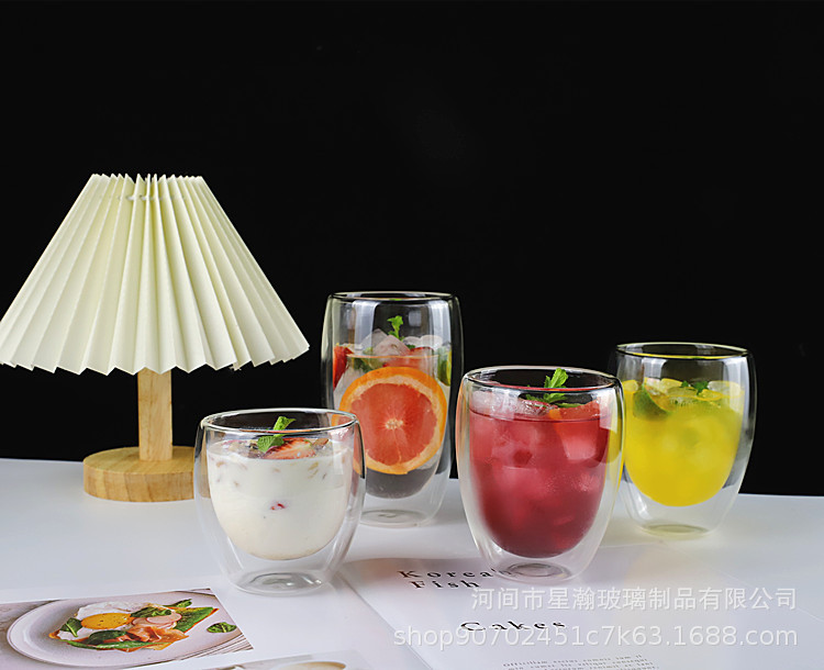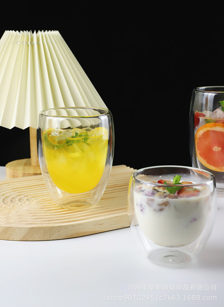 双层玻璃杯厨房蛋形牛奶果汁杯高硼硅简约防烫隔热蛋形双层咖啡杯