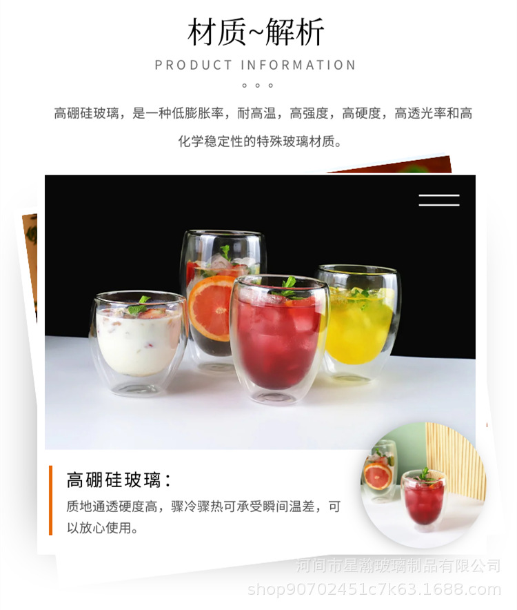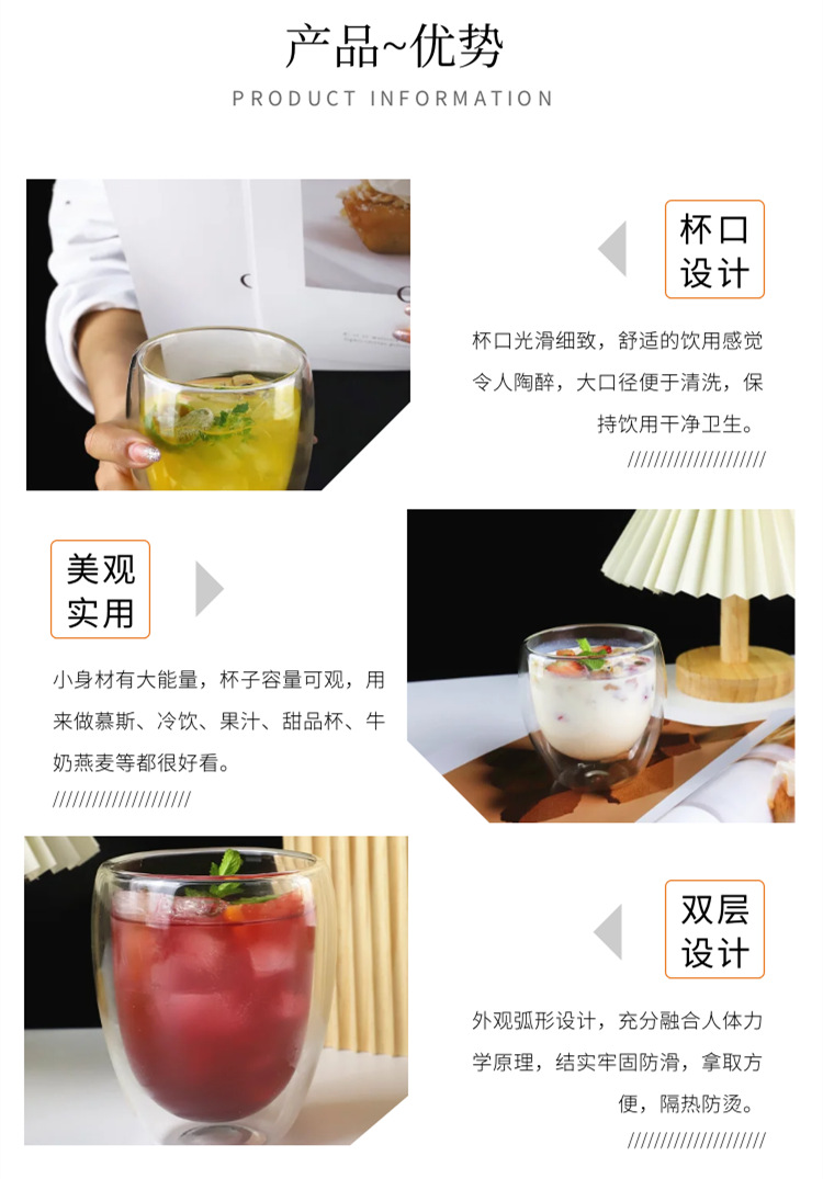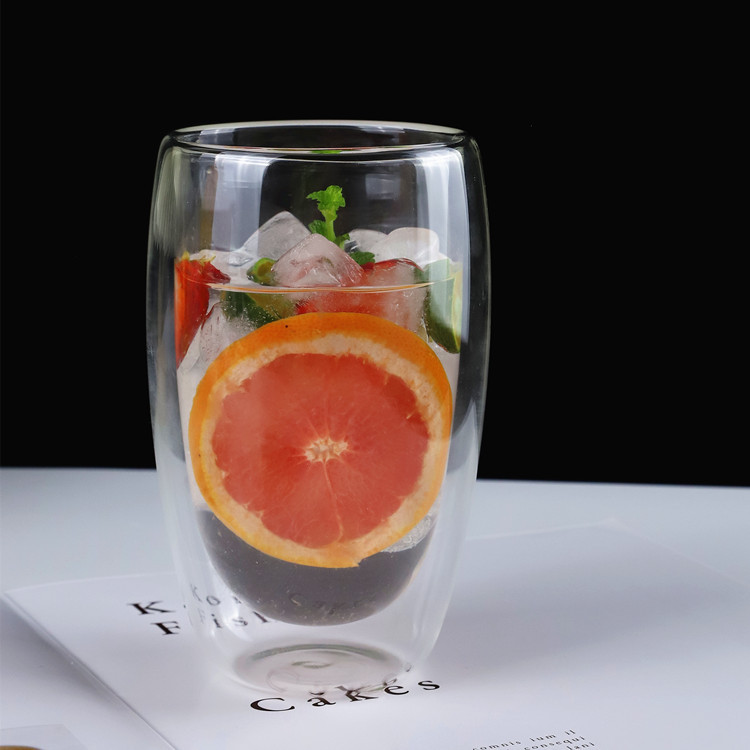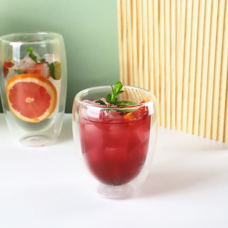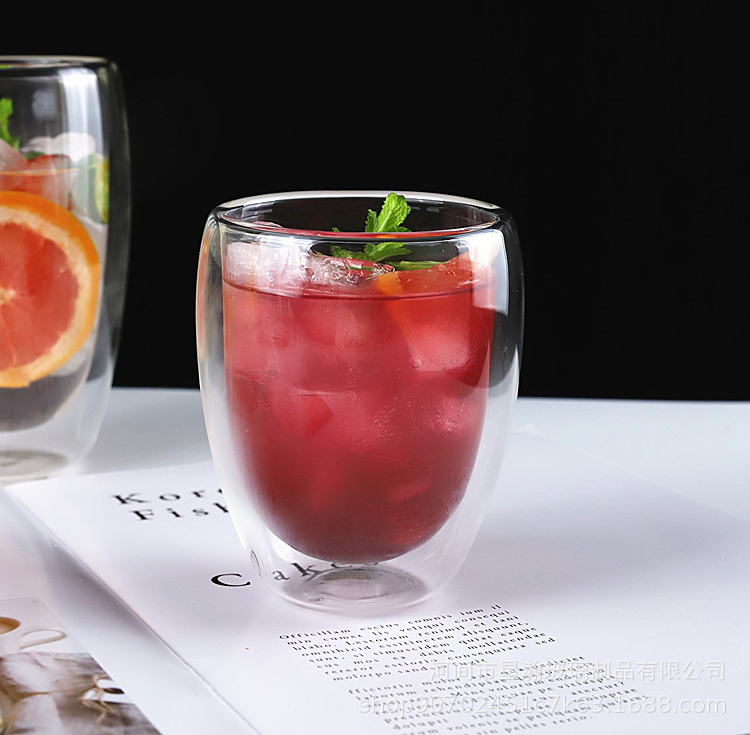 双层玻璃杯厨房蛋形牛奶果汁杯高硼硅简约防烫隔热蛋形双层咖啡杯