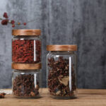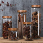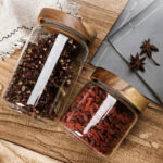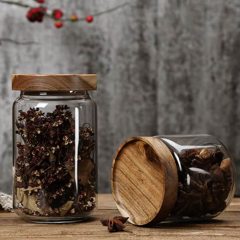 Good Quality Durable Airtight Sealing Wooden Lid High Borosilicate Glass Container Jar for Kitchen Storage