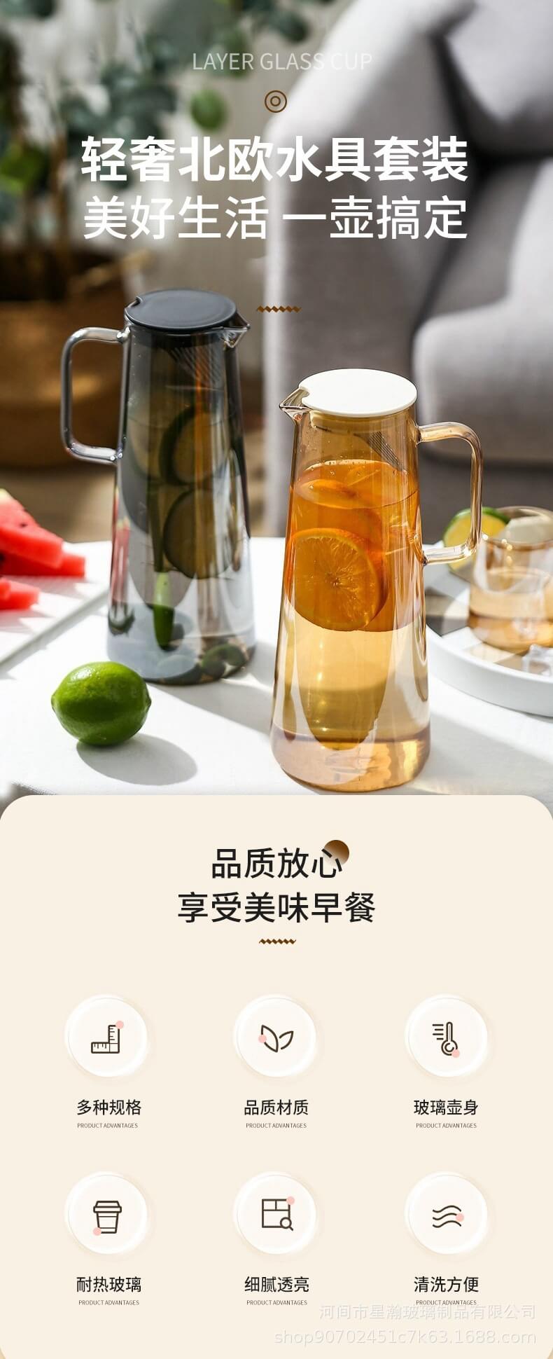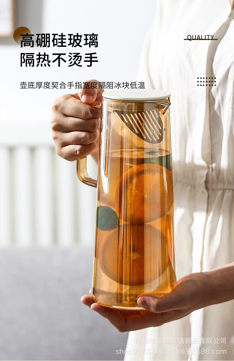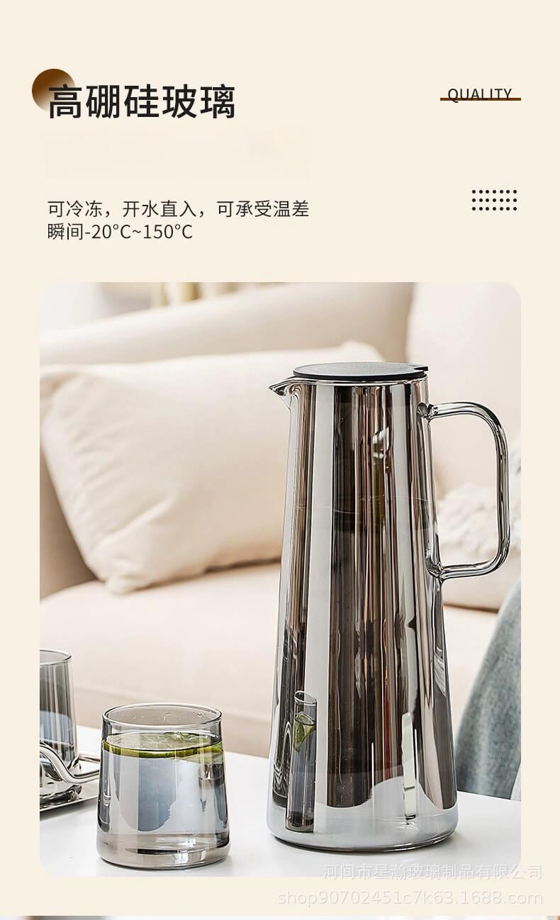 高硼硅玻璃凉水壶 大容量果汁饮料壶 高颜值简约加厚耐高温冷水壶