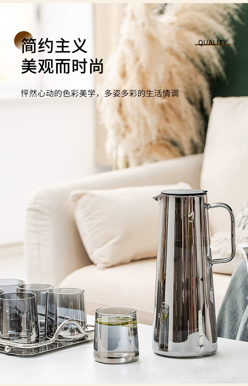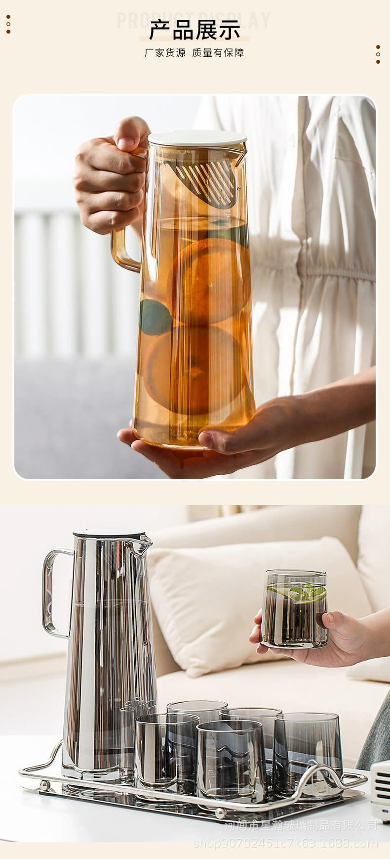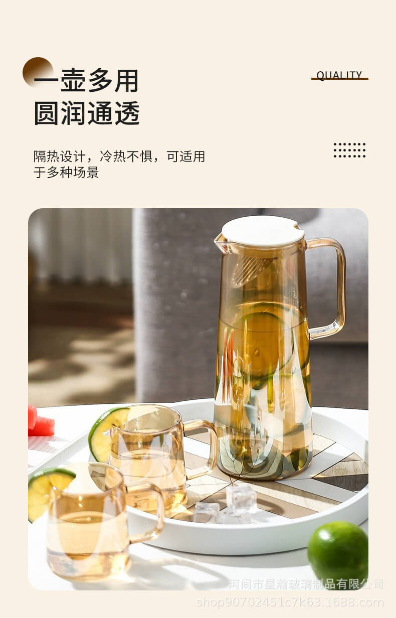 高硼硅玻璃凉水壶 大容量果汁饮料壶 高颜值简约加厚耐高温冷水壶