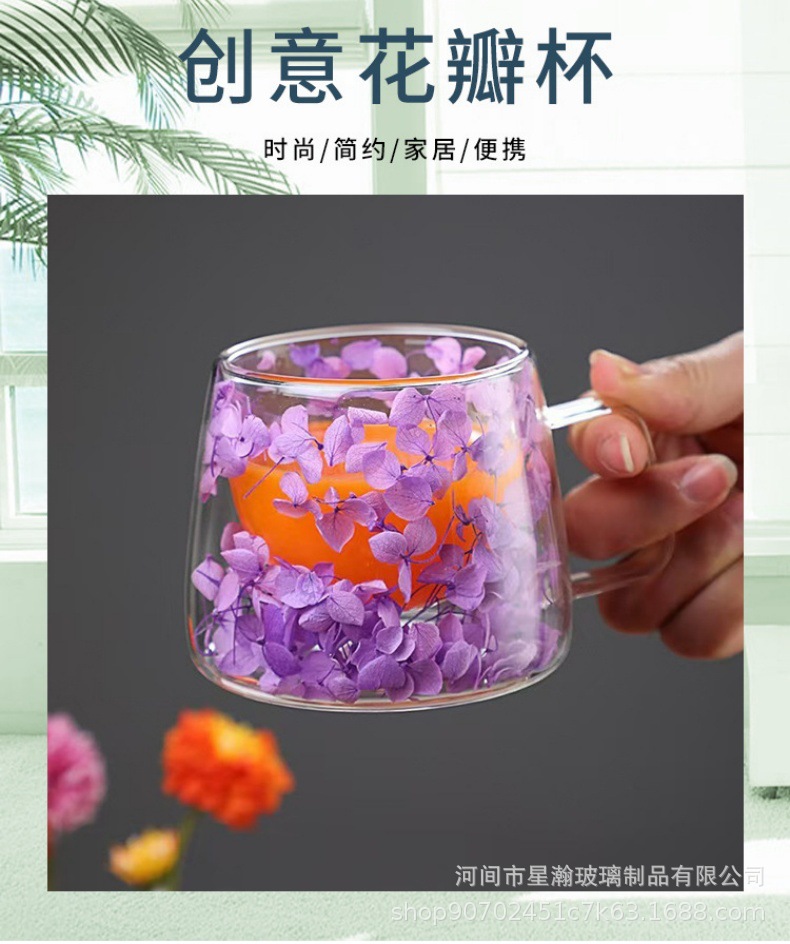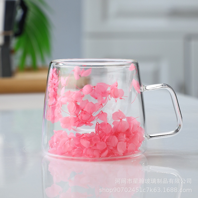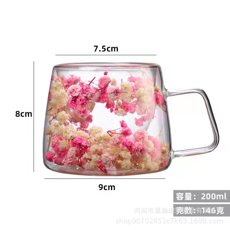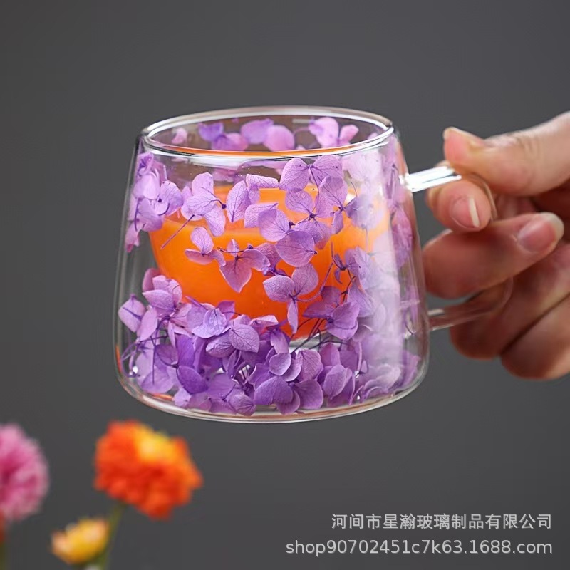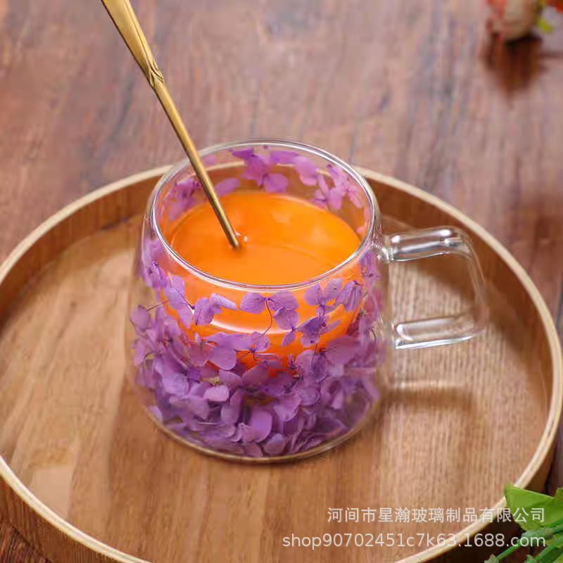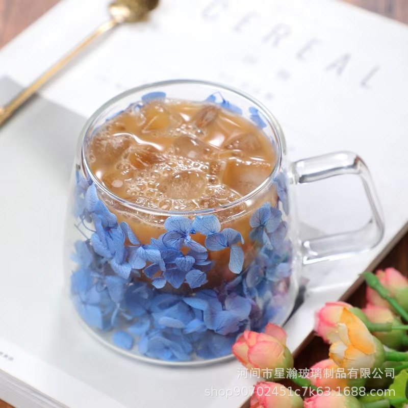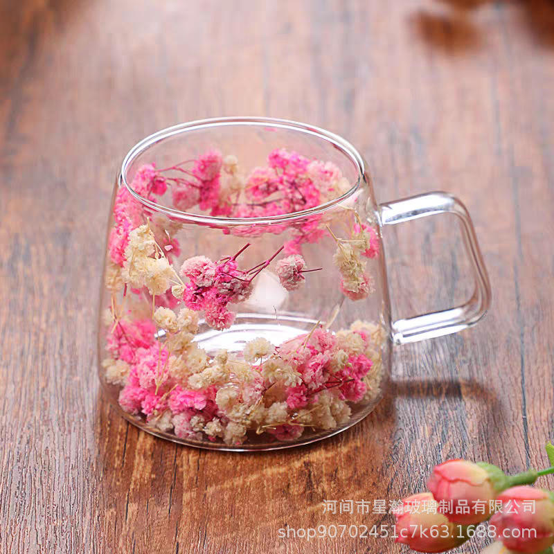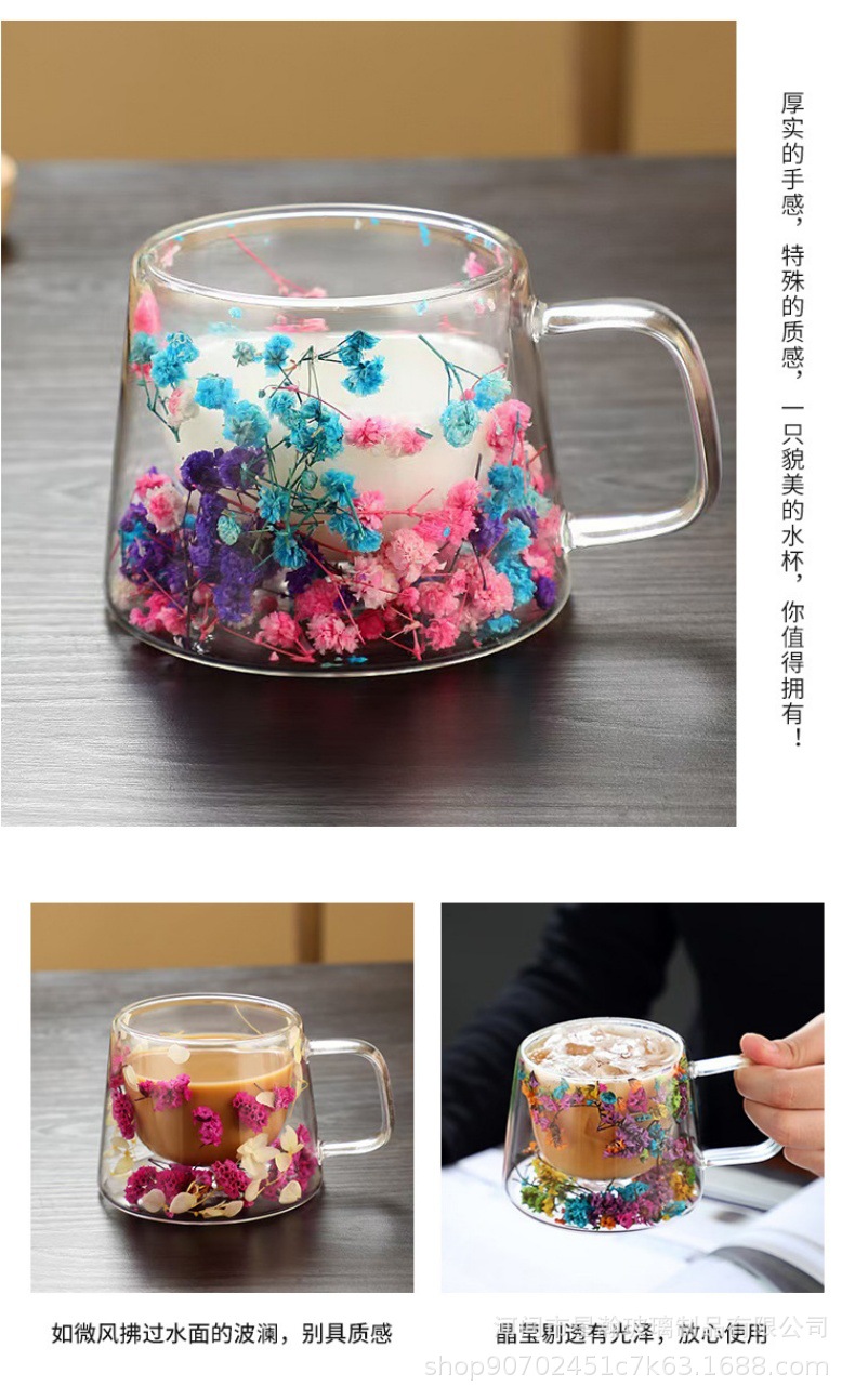 高硼硅玻璃带把干花杯耐热透明果汁奶茶咖啡杯喝加厚隔热双层杯