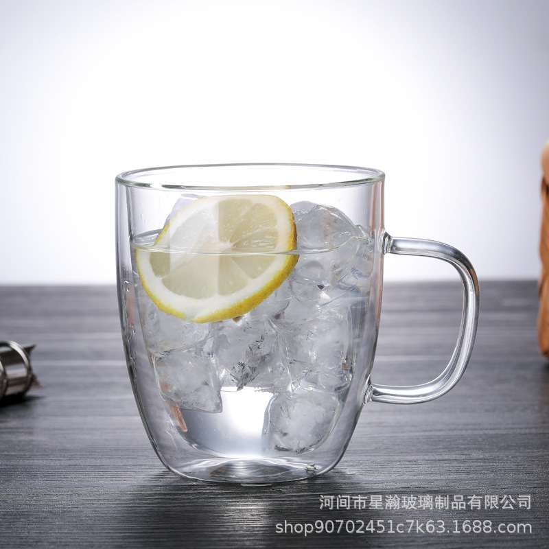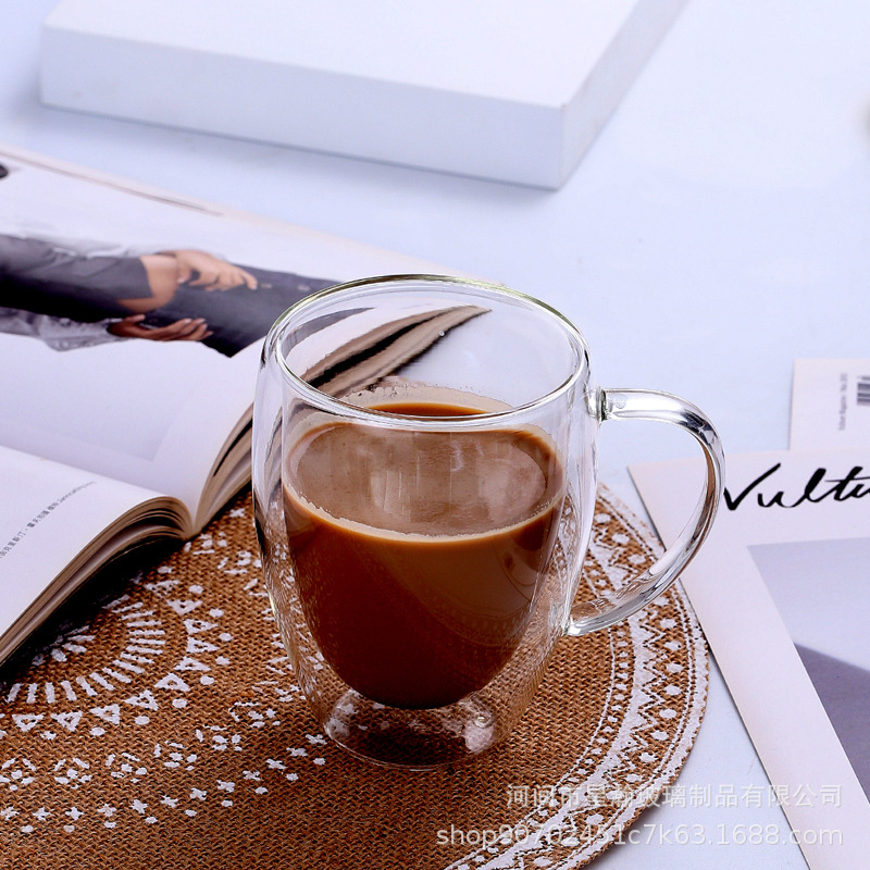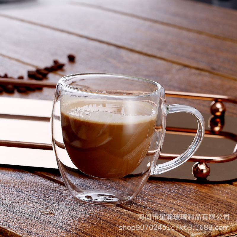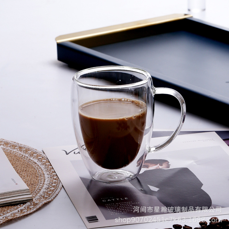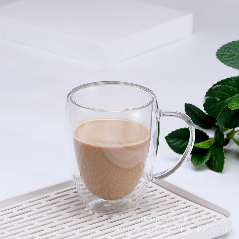 高硼硅透明玻璃双层杯家用饮料牛奶隔热咖啡杯蛋形双层喝水玻璃杯