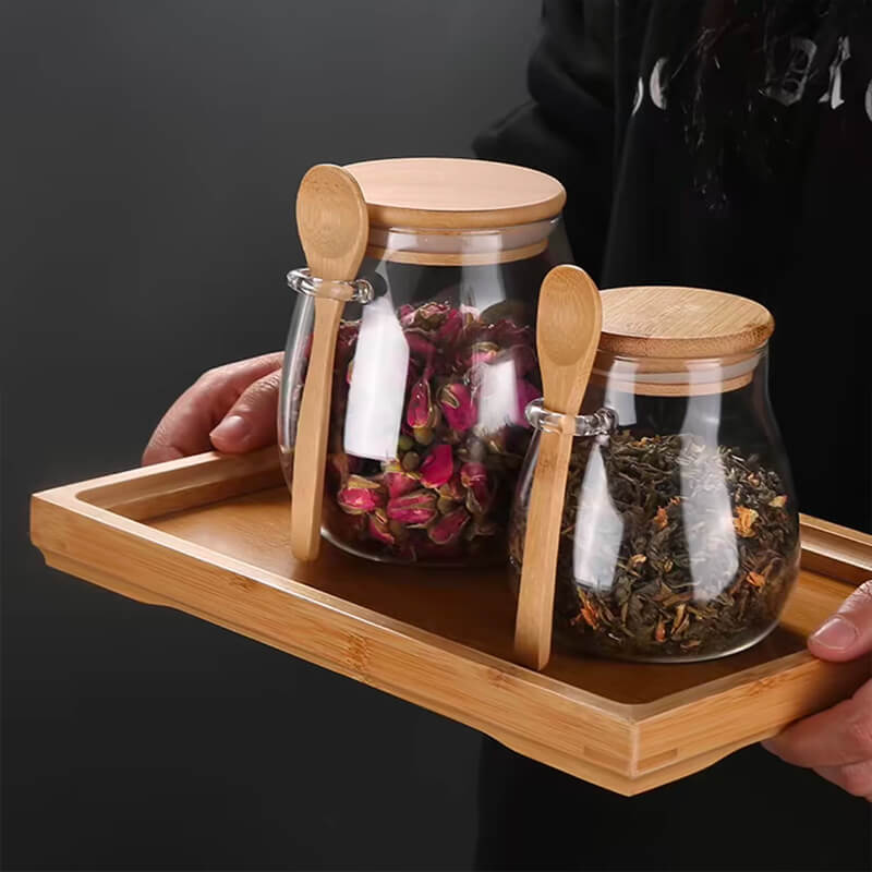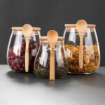 Low Price Sale Leak-Proof Large Capacity Borosilicate Food Glass Transparent Grain Candy Tea Storage Jar with Spoon