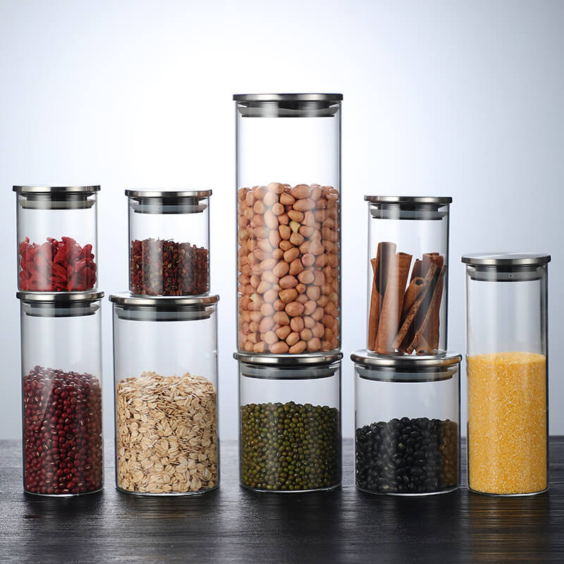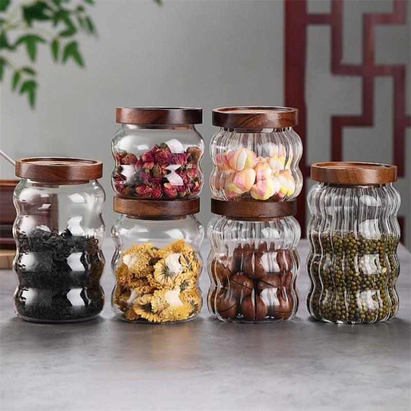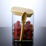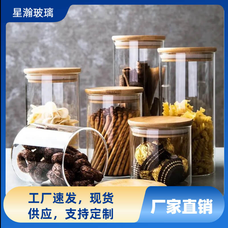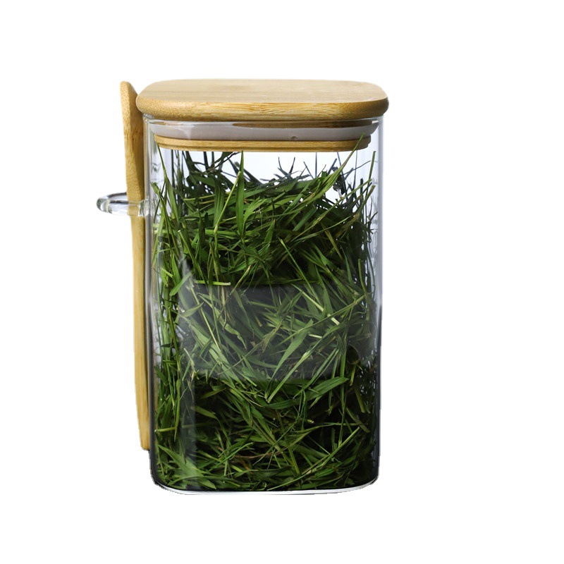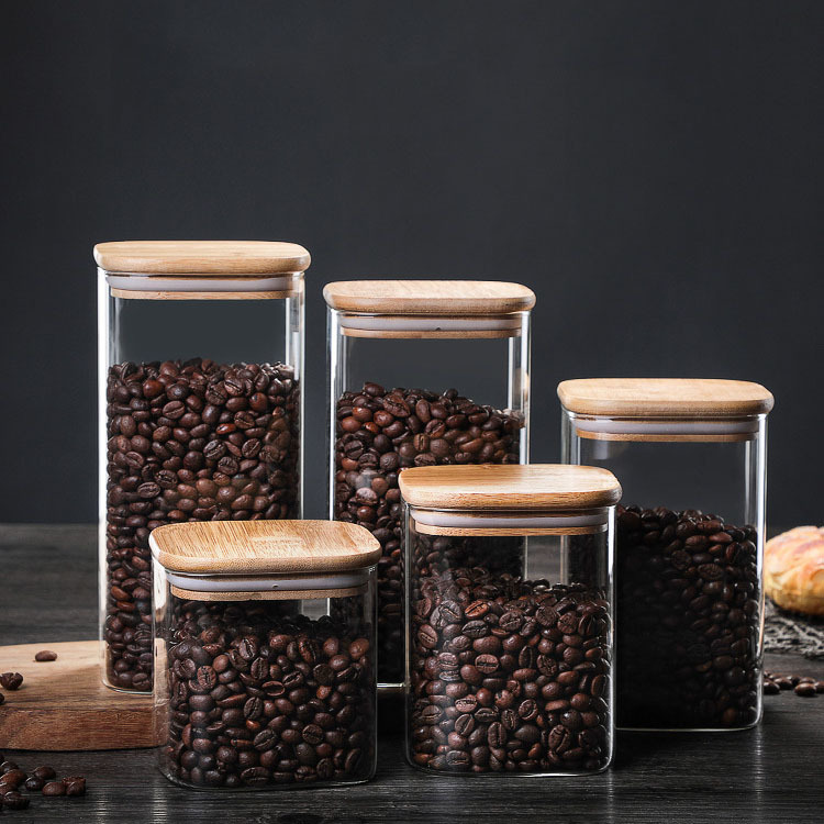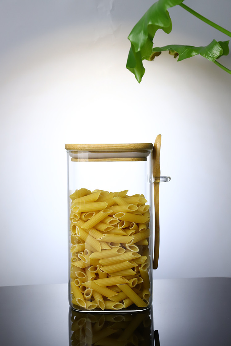 厂家可定制玻璃方形玻璃茶叶密封罐厨房杂粮储物罐带勺零食密封罐
