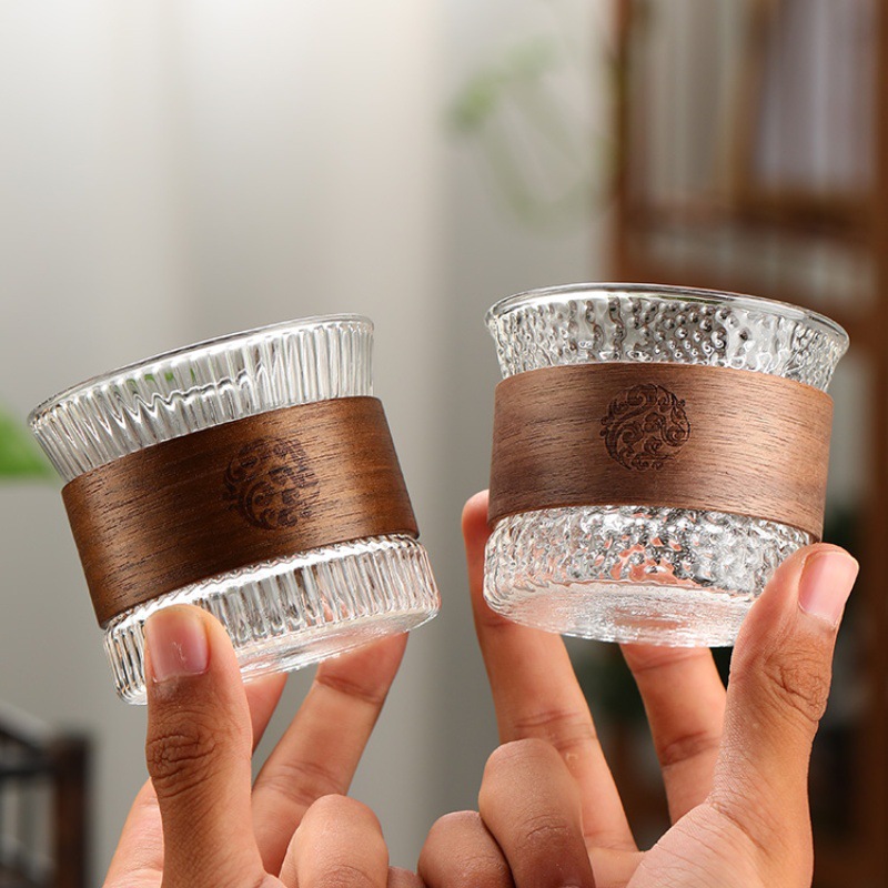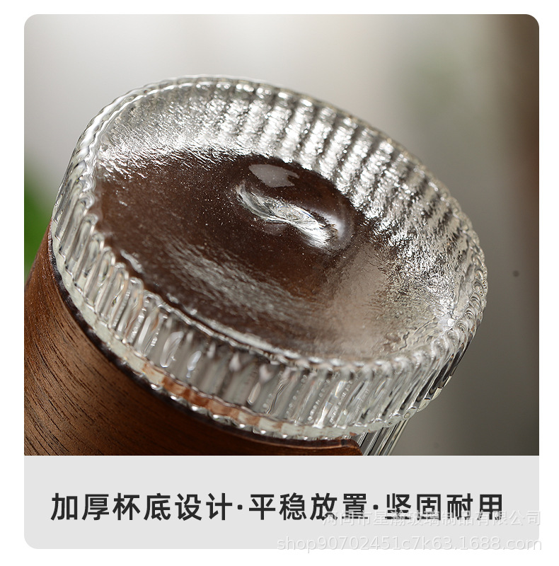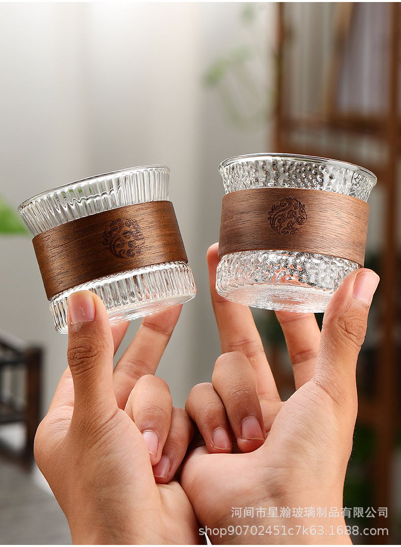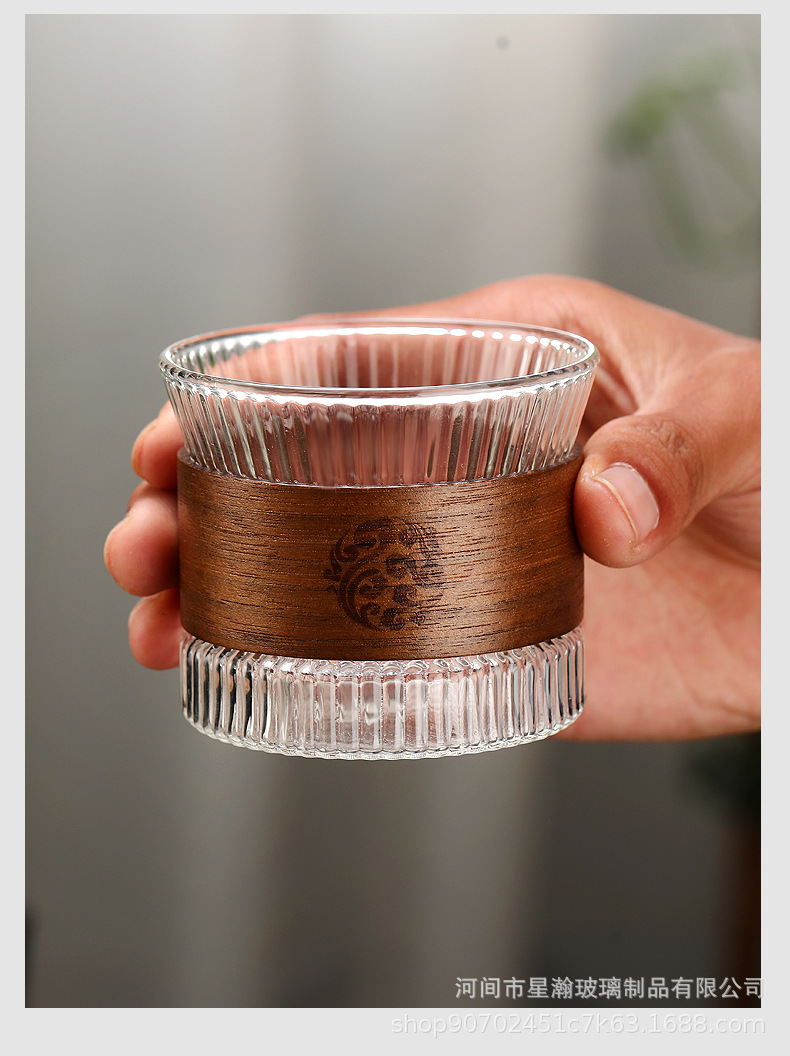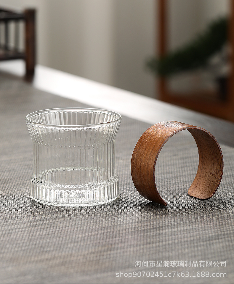 胡桃木防烫竖纹杯耐热小茶杯套装单杯喝茶杯子竖纹品茗杯玻璃杯