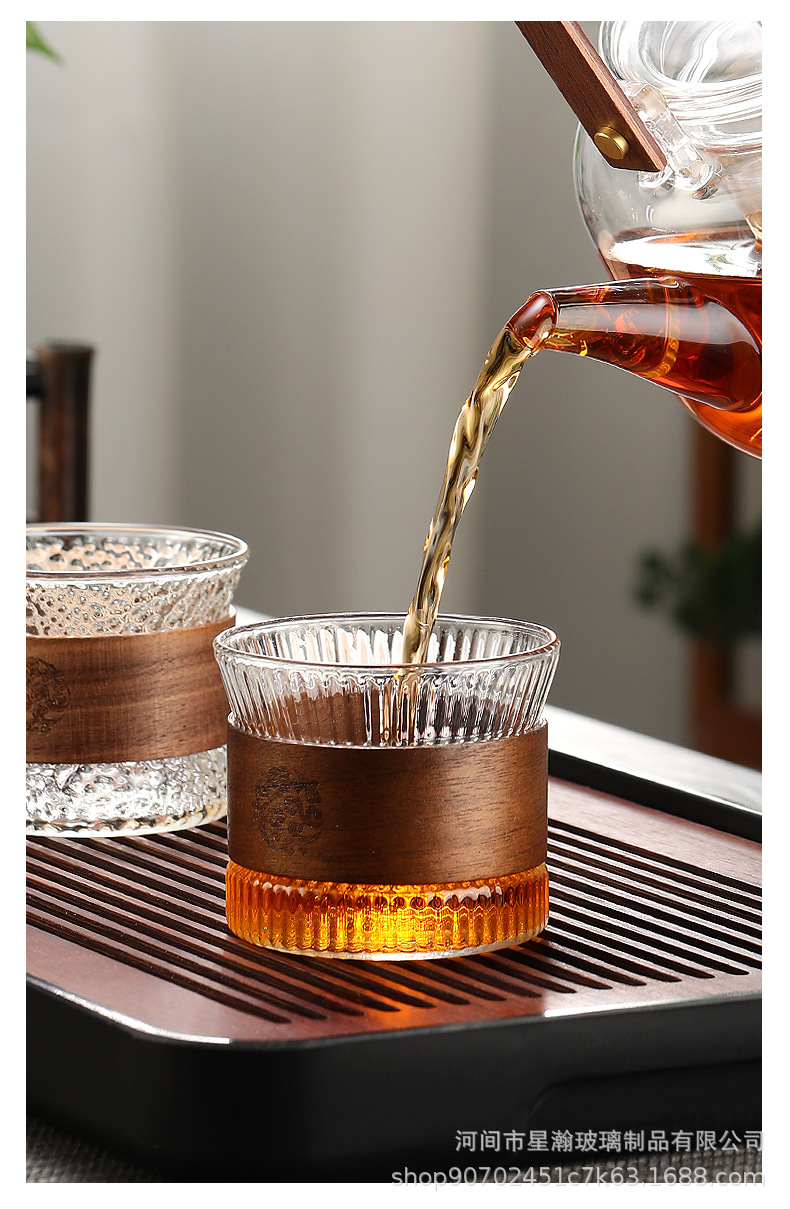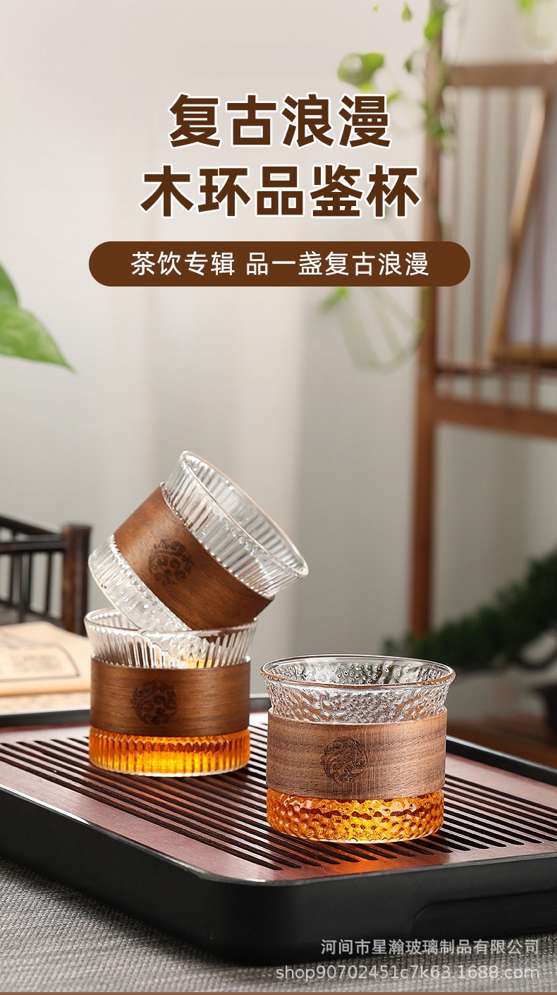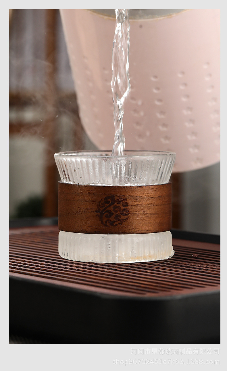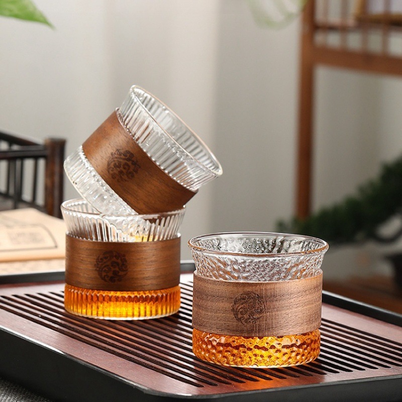 胡桃木防烫竖纹杯耐热小茶杯套装单杯喝茶杯子竖纹品茗杯玻璃杯